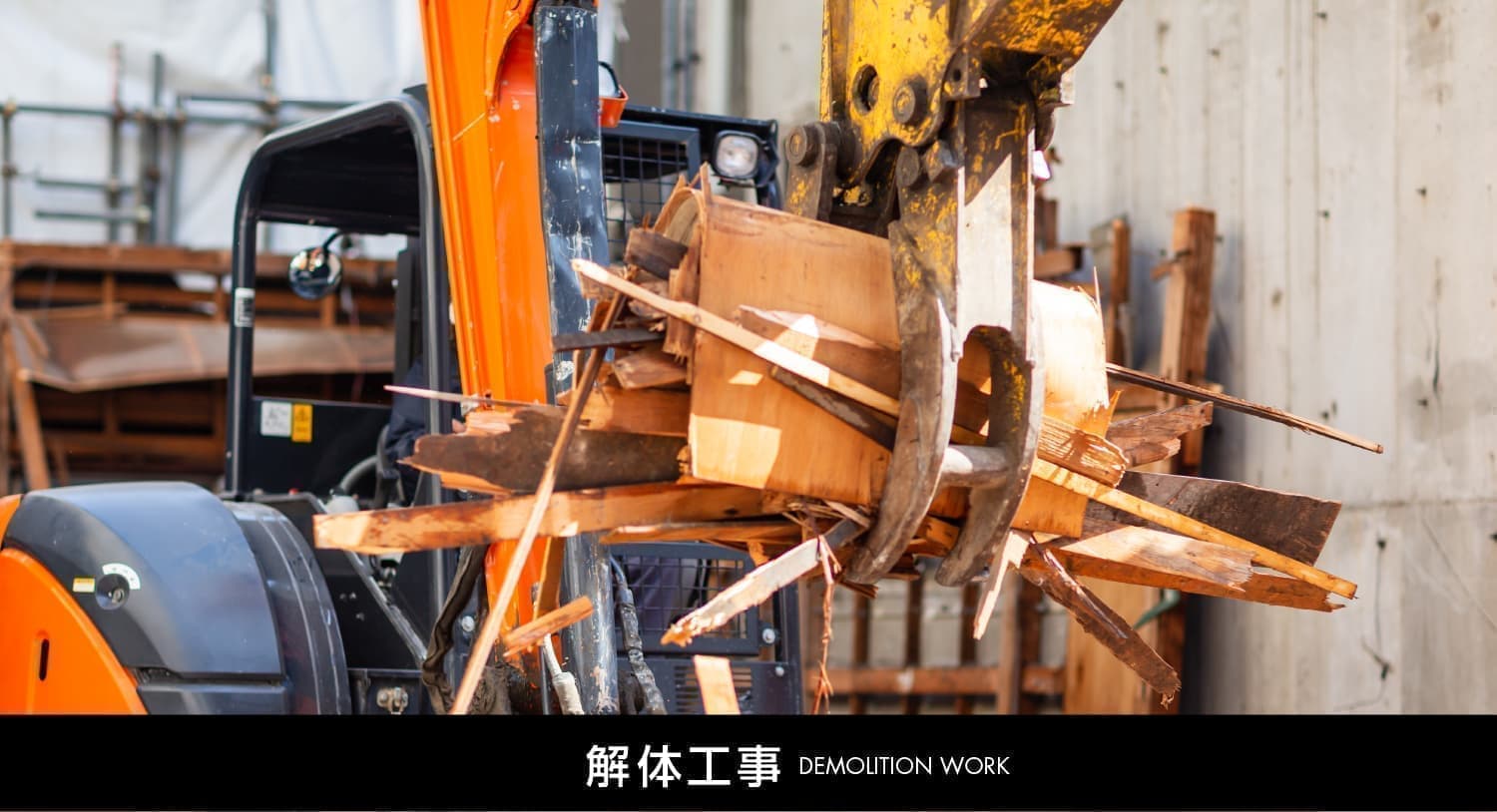 住宅から公共施設まであらゆる建築物、工作物を解体用重機を用いて解体します。